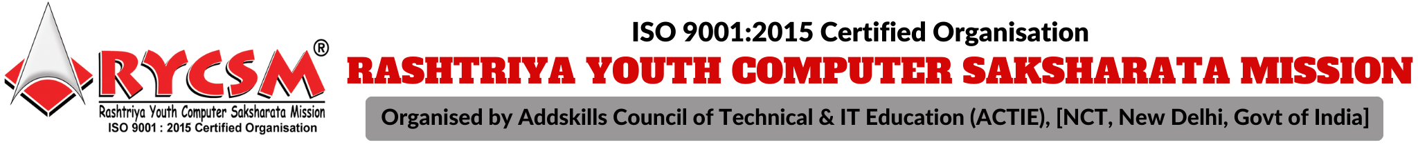 Rashtriya Youth Computer Saksharata Mission is a Trust had been founded under the RYCSM (Rashtriya Youth Computer Saksharata Mission) with the vision of being a reliable Trust, producing at acompetitive level in line with the National Computer Education in India, specially from the rural section. RYCSM (Rashtriya Youth Computer Saksharata Mission) is a Registered under the Trust Act - 1882 from Govt of India, having as ISO 9001 :2015 Organization as well.